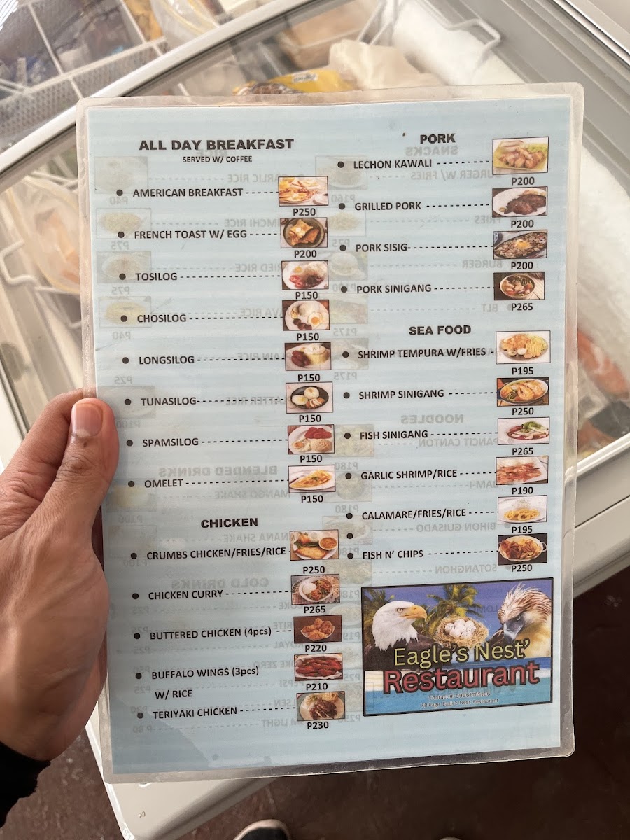 Welcome to Eagle's Nest' Restaurant, a charming American dining spot nestled in Lilo-an, Siquijor. This inviting eatery offers a delightful escape, surrounded by lush green fields, making it the perfect stop for beachgoers visiting nearby Secret Beach.
